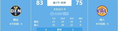 4月26日讯 NBA季后赛,掘金三节打完83-75反超湖人。